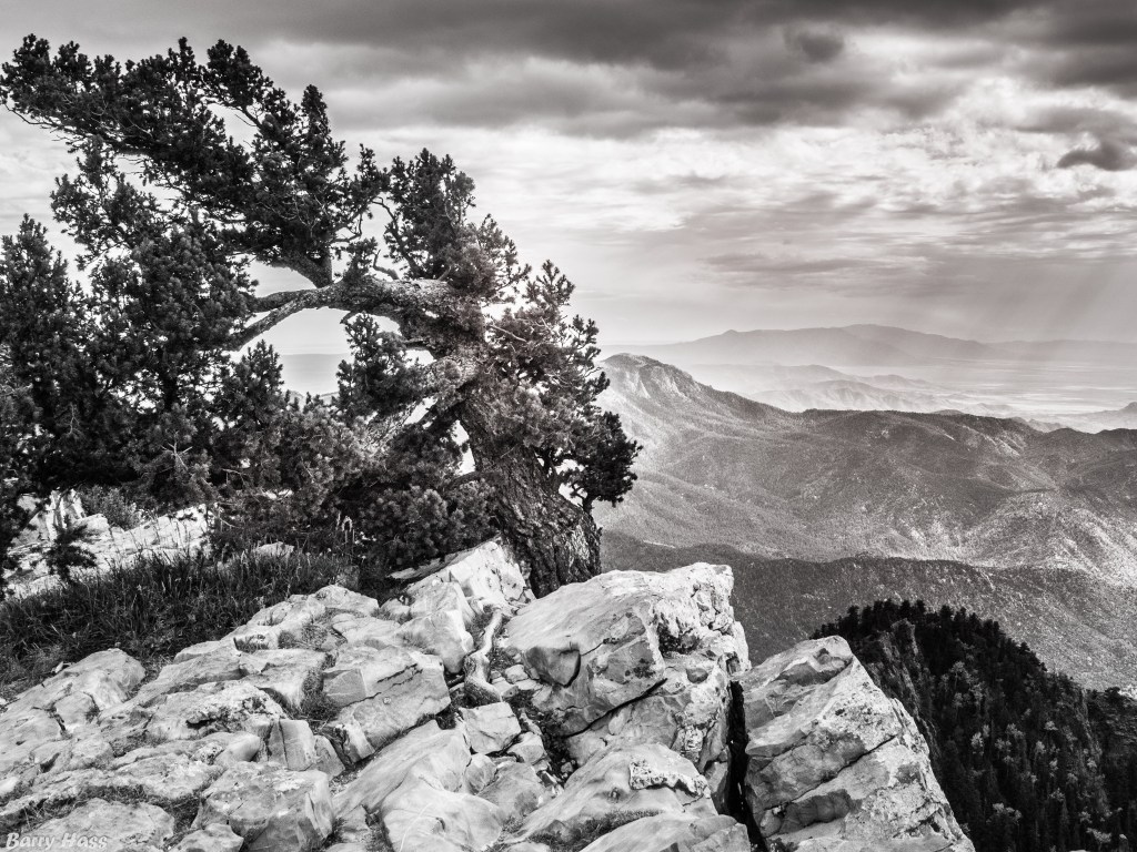When I took this picture from a trail near the summit, it was blustery and mostly cloudy, with temperatures in the 30s and occasional snow flurries. Meanwhile, down in Albuquerque, it was calm and sunny, with temperatures in the 60s.