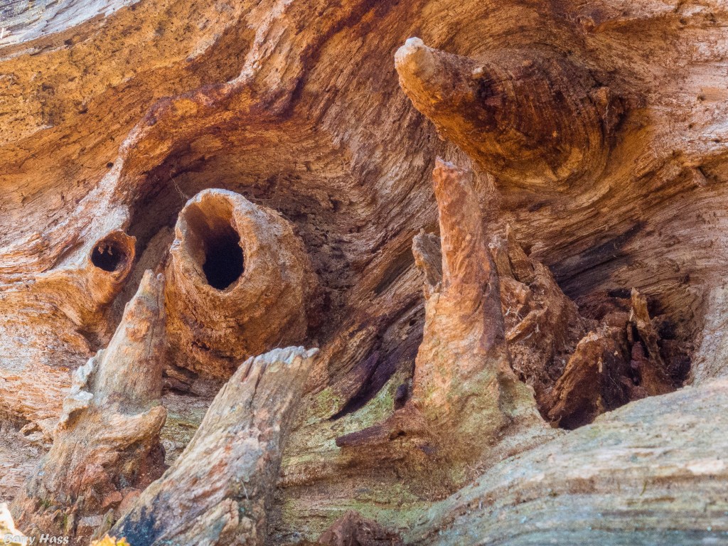 Walking in the woods last week, I came across a fallen tree, snagged on a neighbor several feet off the ground. Suspended above the moist, bustling metropolis of the forest floor, the trunk had dried out and cracked open, revealing colors and shapes reminiscent of the canyons of the American West.