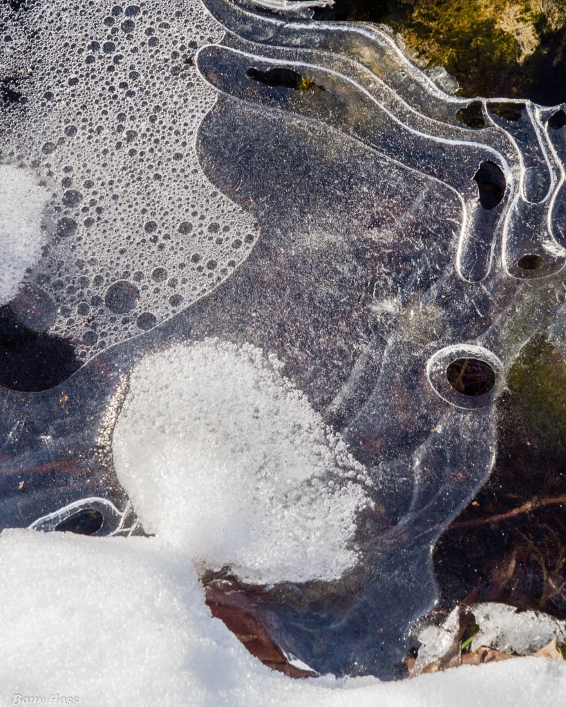 Strangely enough, the snowy part of winter this year seemed to coincide almost exactly with the Winter Olympics. I’ve been enjoying walking in the woods by day and, notwithstanding the endless scandals and psychodramas, watching the Olympics at night. But as the games have faded away, so has the snow. I saw this melting stream while walking at Pegan Hill in Natick this week. It reminded me of an abstract painting.