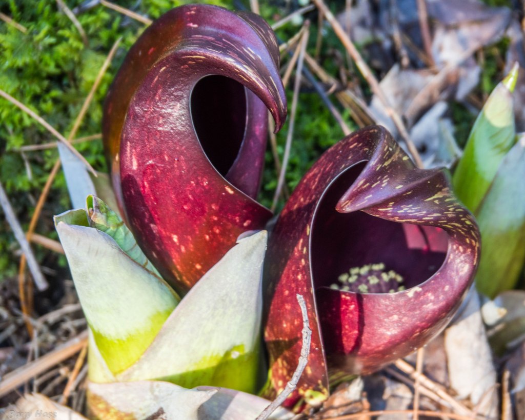 This is the time of year when skunk cabbage starts popping up in swamps and marshy woodlands. The plants will turn green and leafy in a few weeks, but for now they look to me like tiny aliens.