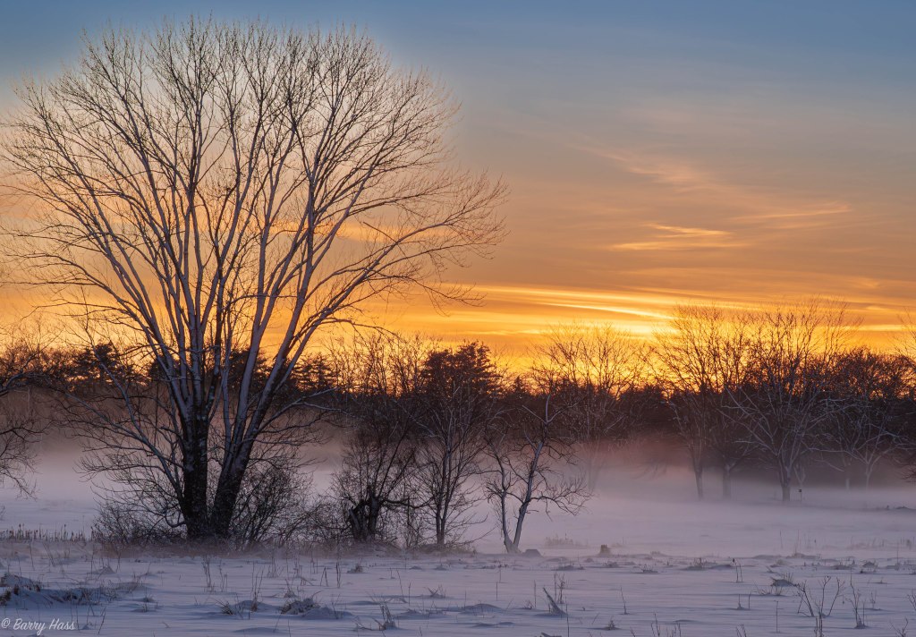 As the temperature dropped at the end of our one day of snow cover earlier this week, a blanket of fog formed near the ground.